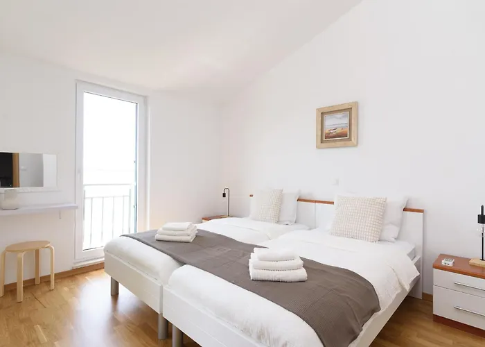 Ha jól érzi magát Trogirban, élvezze a tengerparti 100 m²-es Appartment Mi Mara Ciovo Trogir vendégszeretetét, amely autóval hozzávetőlegesen 10 percnyi vezetésre van a Kamerlengo várvtól és egy 2 km-es távolságra a Beach Vela Dragától. A 2 hálószobás apartman teraszt biztosít, amely a tengerre néz.